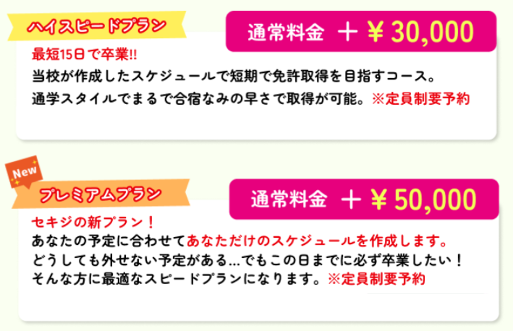 ご都合、ペースに合わせて教習を進められるセキキョーの基本プランです。